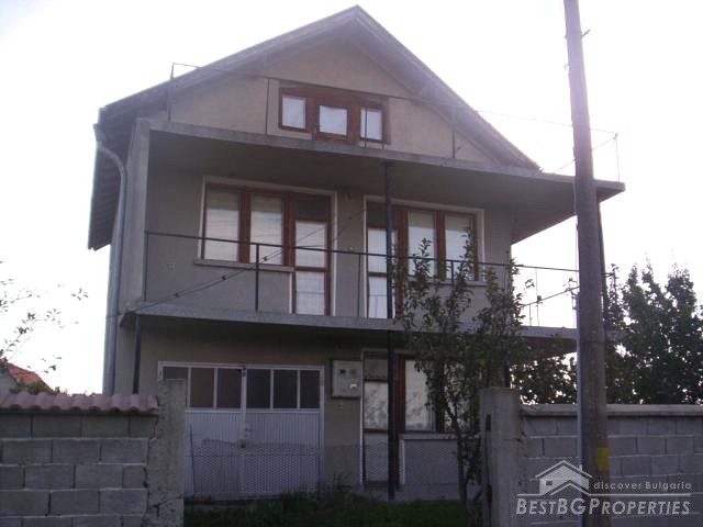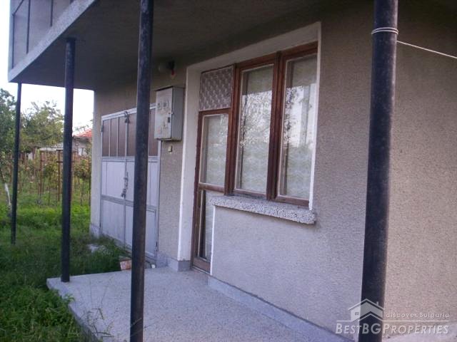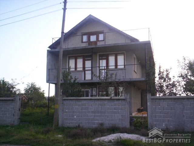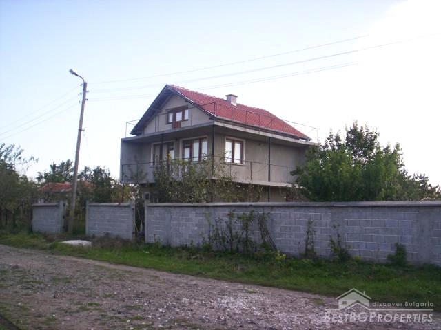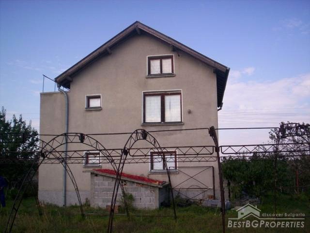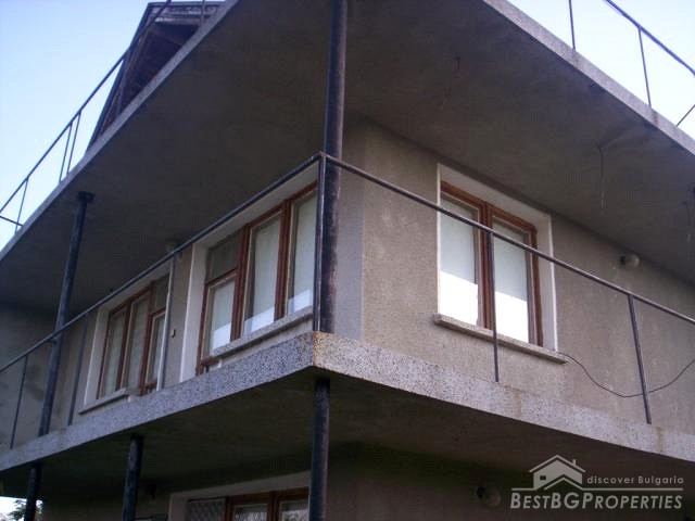 The property is located in the end of the village on a valley with a asphalt road leading to it. This is a two-storey house of 210 sq.m. with all the necessary facilities for living: electricity, water supply, a septic tank. 1st floor: 2 rooms and an entrance-hall, with cemented floor, brick plastered walls and woodwork on the windows. 2nd floor: 2 rooms with an entrance hall, with cemented floor, brick plastered walls and woodwork on the windows.