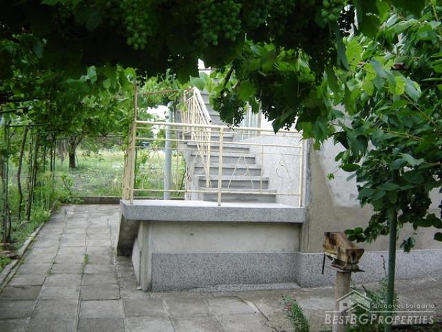 The property is situated in a peaceful charming village near the city of Burgas and not far from the International Airport. It includes a spacious two storey villa, a garage of 45 sq.m and a garden of 1270 sq.m. The total living area of the house is 65 sq.m distributed between six rooms. On the first floor there are two bedrooms, a kitchen, bathroom and toilet. An external staircase leads to the second floor where two more bedrooms and another kitchen are disposed. Upstairs there is a spacious veranda that offers lovely view toward the fields.