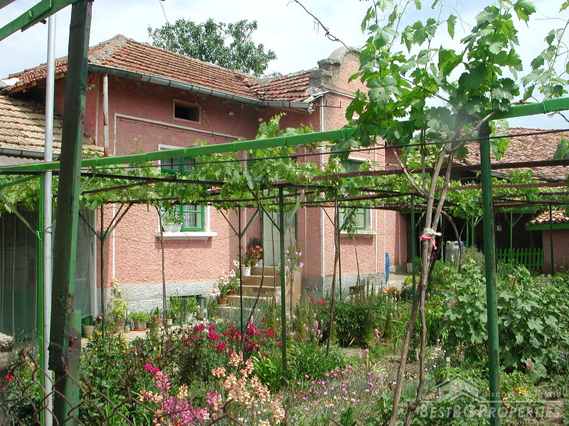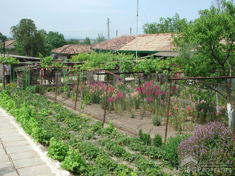 Charming house in a picturesque village near Shoumen. The settlement is situated in ecologically clear region with fresh air and magnificent view of the valley. The population is approximately 1750 persons. There are shops, a school, doctor and a post office making the place suitable for permanent living. The village is situated about 115 km from Varna and the International airport. Regular bus service is available. The house we offer is in very good condition. The total living area is 80 sq m spread among 5 rooms. The first floor constitutes of 2 rooms : kitchen and a dining room. The second floor consists of 3 bedrooms. There is a summer kitchen and additional farm buildings. Electricity, water and a septic tank are available. The toilet and the bathroom are external but could be relocated easily. The garden is 2000 sq m tastefully organized in two sections : flowers and greenery in the first half and vegetables in the second.