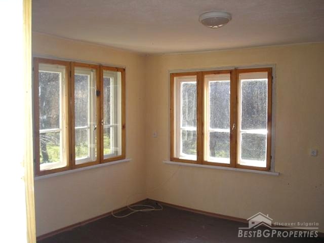 This is an offer you shouldn’t miss - a cute newly built house sheltered in the heart of the west Stara Planina Mountain less than 15 km from the beautiful town of Etropole and about 100 km from Sofia. The village lies in a picturesque area that is a well known tourist destination with breathtaking nature and good opportunities for relaxation and recreation. There are natural reserves, woods, waterfalls, caves – a little paradise away from noise and pollution. Just a few kilometers from the village are the famous preserves of Ribaritza and Divchovoto where you could go fishing. Riding and hunting is also available; the area boasts of the great variety of game. If you wish to invest in this attractive spot of Bulgaria you could accept the suggestion we give you. The house is two storey with 110 sq m living area. First floor – 60 sq m distributed between a tavern, a kitchen and inner bathroom/WC. The second floor has two bedrooms (approx. 20 sq m each) and a small entrance hall. The house is finished with terracotta and wooden flooring, woodwork and stone paneling. The size of the whole property including the garden is 1953 sq m.