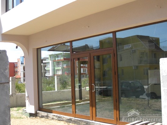The building itself has total living area of 650 sq m distributed between four floors. The ground floor consists of a shop with size of 60 sq m and a restaurant-50 sq m. There are 3 double rooms with separate bathrooms with WC, 1 apartment and a service room on the first storey. The second floor has 1 large apartment containing three rooms and two bathrooms with WC, another apartment containing 2 rooms and a service room. The third floor is an attic divided into two separate premises. Each room or apartment has its own terrace. The hotel is built according to the highest standards. It is externally insulated with 10 cm thick thermal and sun insulation. The plaster is a special silicon one. There is local heating installed in the building. The only finishing that has to be done is the flooring, filling and painting inside. It will be fulfilled by the owner after paying a deposit by the client. The property has favourable location and fantastic sea view.