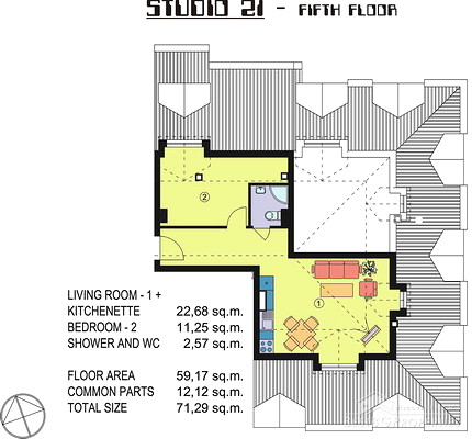 The site is a five storey building and has total 22 apartments, studios, one & two bedroom apartments & duplexes with a wonderful view to the mountain. All the apartments are going to be sold fully furnished. All apartments will have electricity installation, water and drainage. The complex is ready for use.