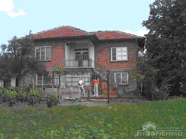 Cosy two-storey brick built house with stone slates is situated at the end of a picturesque village in Stara Zagora area. The hamlet is small but well organized and just a few kilometers from the main road connecting Stara Zagora and Haskovo. There is a small river passing by the village and the property is within walking distance from its center.