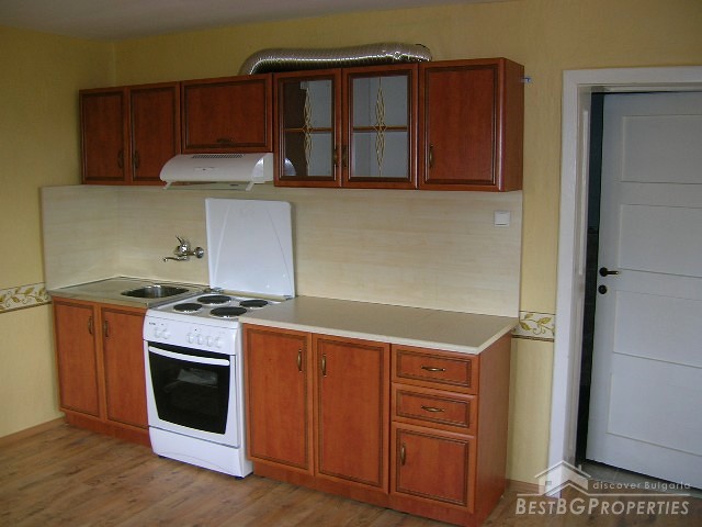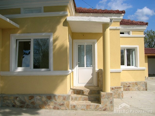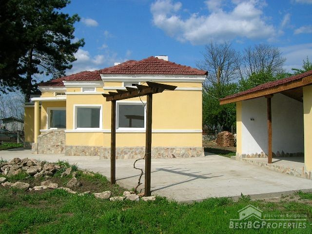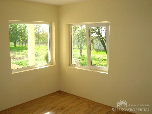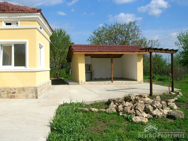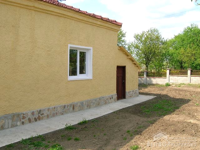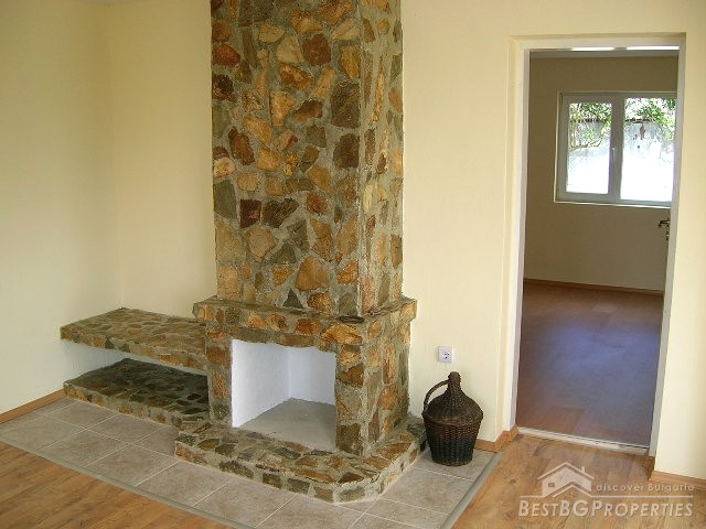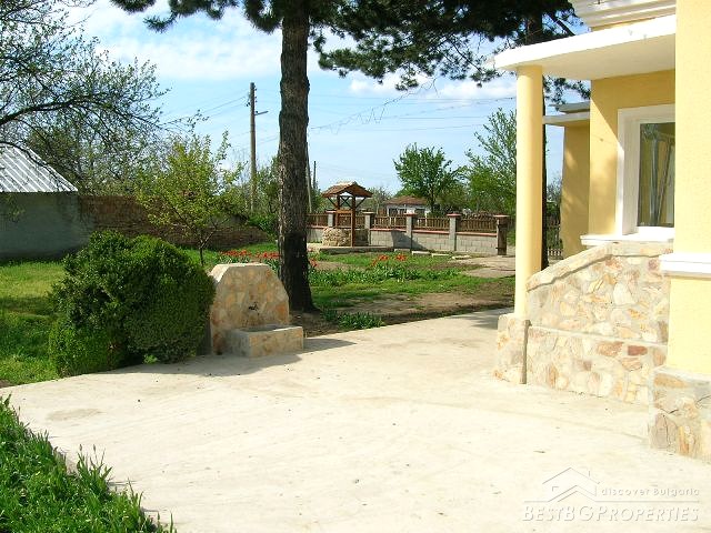 The house spreads over 100 sq m. It has two bedrooms, living room with working fireplace, kitchen, corridor and bathroom/WC. The house is luxurally finished with PVC windows, terracotta and laminate flooring, fitted kitchen supplied with cooker, fan extractor and cupboards/. There is water, electricity and telephone line as well as septic tank. The garden is shaped surrounded with solid fence. The property is a beautiful cosy place not only for holidays but for permanent living too. It benefits from its good location being at the end of the village. The settlement have two shops, bar, post office, mayor house and regular transport to Dobrich. All additional amenities you could find in the city that is just a few minutes by car. The nearest beach is less than half an hour driving.