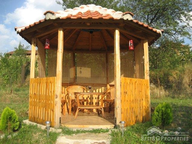The beautifully and carefully landscaped garden (2600 sq m) is planted with fruit trees (plum, peach, pear, apple), shrubs, flowers and a vegetable patch. The house is surrounded by grapevine arbour which will give a lovely shade and fruit. There is a large wooden gazebo in the garden.