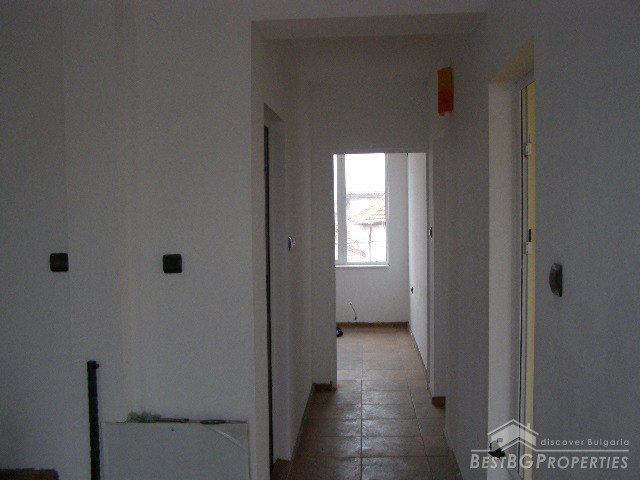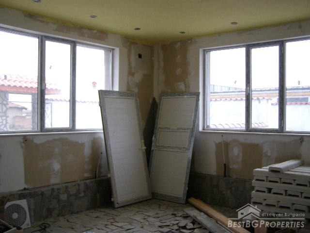 The second floor has three bedrooms, corridor, bathroom/WC and two terraces. The floor is covered with ceramic tiles, the walls are painted with latex. The bathroom and the toilet are tiled. Only the balconies need to be supplied with parapet. The floor is completely finished and needs just proper furniture to become ready to live in.