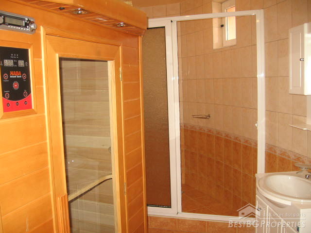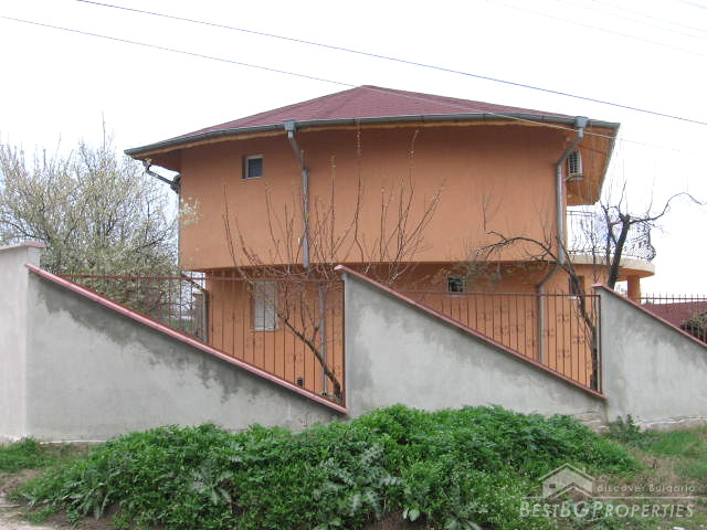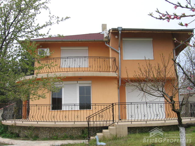 This is a handsome luxurious house located in the area of Varna only 10 km away from the sea! The house is newly built, finished to the highest standards to correspond to your refined taste. The building is two storey with total living area of 280 sq m. There are three bedrooms, two bathrooms/WCs with bath-tubs, big living room and completely fitted and furnished kitchen. The flooring is terracotta /in the kitchen, bathrooms and the corridors/ and bamboo laminate /in the living room and the bedrooms/. The two big verandas /one on the first and the other on the second floor/ are covered with terracotta and finished with beautiful railings from wrought iron.