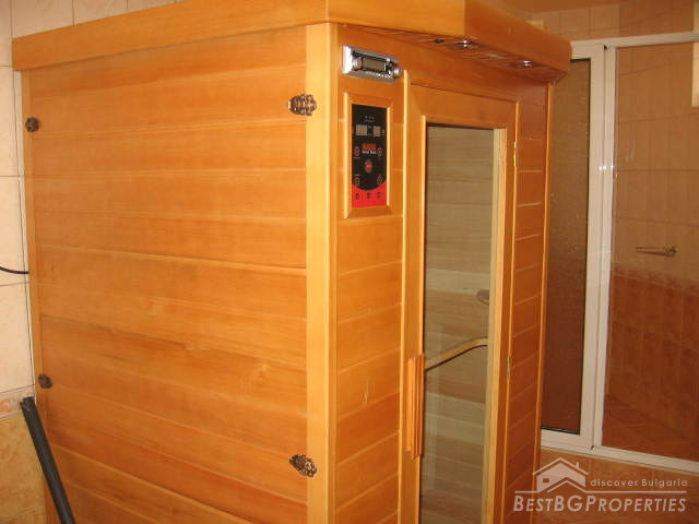 The house is supplied with air conditioners and sauna. In the living room there is a fire-place. It could be easily connected to cable TV and Internet upon request. Outside next to the house is the barbecue area. The garden of 850 sq m is well-shaped. There is enough free space for parking lot. The whole property is surrounded by solid fence.