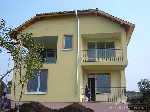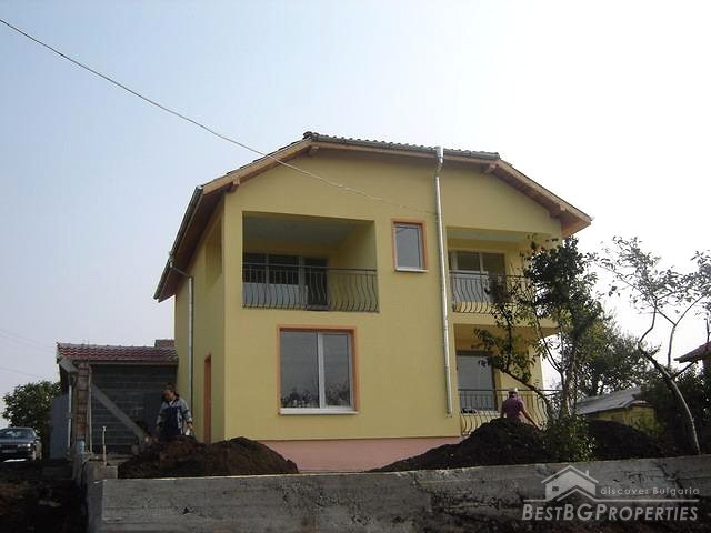 This is a chance to purchase a luxurious newly built house only 5 km from the sea close to Burgas! The house offers 200 sq m living area distributed between two floors. The first floor consists of two bedrooms, a dining room and bathroom/WC. Inner staircase leads to the upstairs where two more bedrooms are disposed as well as a living room, two terraces, bathroom and toilet. There is a nice view over toward the huge lake of Mandra. The house is not finished yet and needs some final peace of work. The bathroom and the toilet are tiled and equipped. Electricity, water and telephone line are installed in the house and you could also have cable TV and internet according to your preferences. Next to the house there is a garage; the garden is 400 sq m.