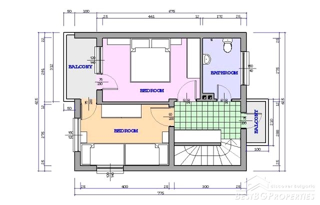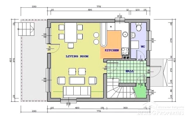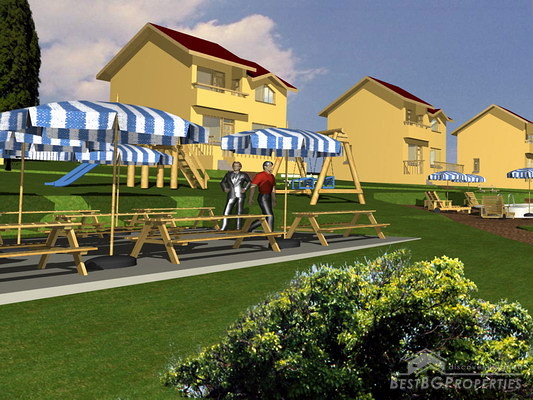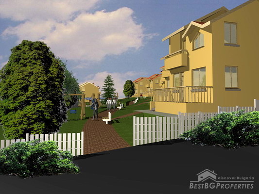 The living area of each house is 101 m2 and the total plot of land is 430 m2. The buildings are meant to be built out of concrete, bricks and roof-tiles. The windows are PVC and the doors- MDF. Bathrooms are with terra-cotta and tiles. The colours will be defined by the customer upon contract conclusion. The kitchen is a standard one. Air conditioner will be installed.