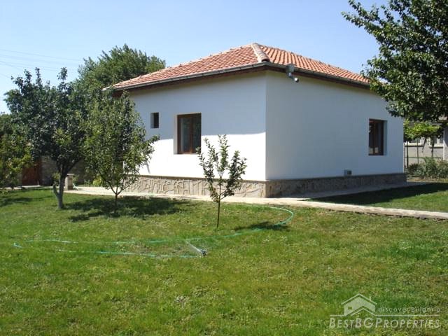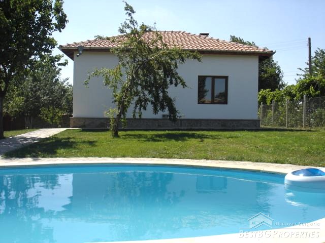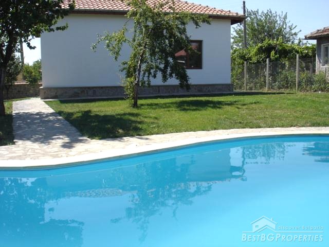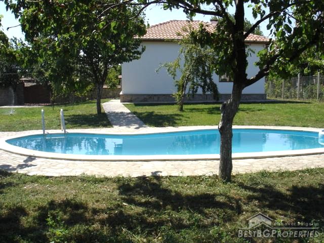 You have the extremely good opportunity to obtain this renessaince house with a swimming pool, built in traditional Bulgarian style. The house is located in a pretty tidy village, with more than 40 U.K. citizens already, ecologically clean region, good communications, post office, shops, municipality, etc. The property is situated in a very quiet place and comes with land of approx. 1060sq/m (more than 30 fruirfull trees in the garden) and 82 sq/m build-up area, divided into 2 bedrooms, bathroom, living room with an equipped kitchen. All internal doors, garden gates, ceilings, kitchen furniture are natural wood made. The city of Varna and the International Airport are 52 km. away, the town of Balchik and the sea cost is 7 km away. Wonderful location for a perfect holiday house!
