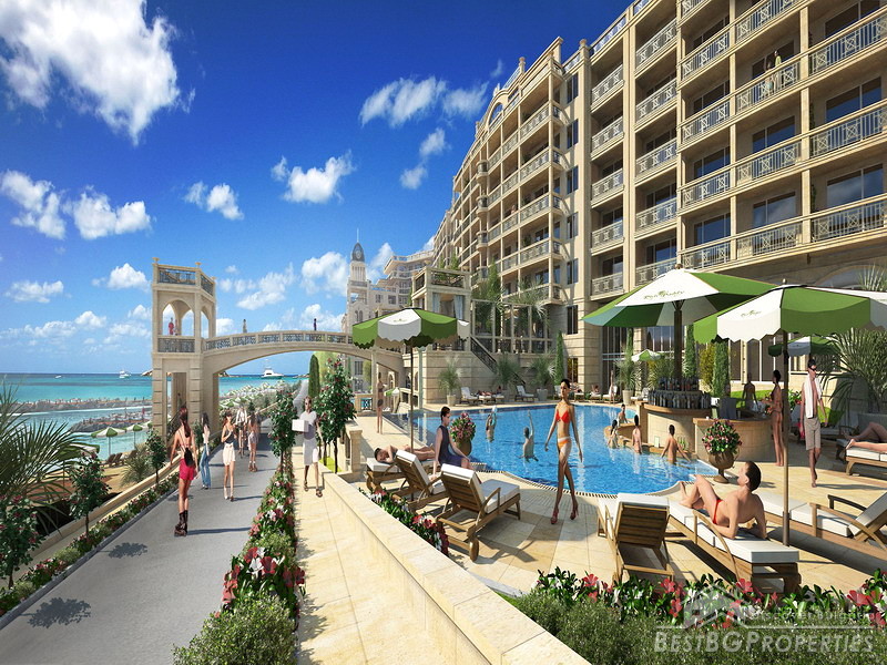 The complex itself is situated on 9 000 sq m of beachfront plot and consists of 180 luxury studios, 1-, 2- and 3-bedroom apartments, all with fantastic sea views. All properties have terraces facing south, southeast and southwest to the beach and sea. Each apartment is fully central air-conditioned in summer and heated in winter with individual metering and controls.