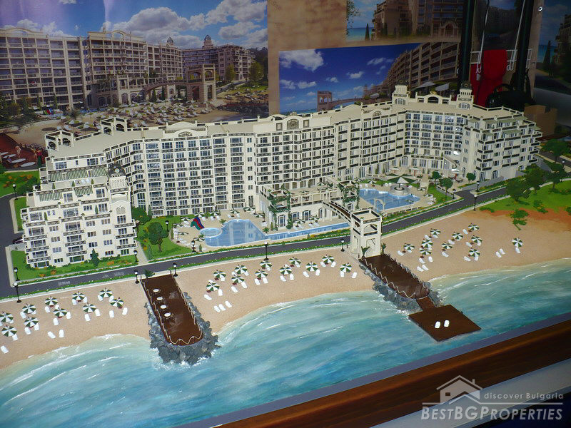 It is a large gated development located on a quiet sandy beach in the resort of Pomorie. It is within 6 min drive to Burgas International Airport, only 15 min south to Burgas downtown and 15 min north to picturesque ancient town of Nessebar and the most popular Black sea resort-Sunny Beach. The drive to Sofia is 4 hours, Varna-1 hour and Plovdiv-3 hours.