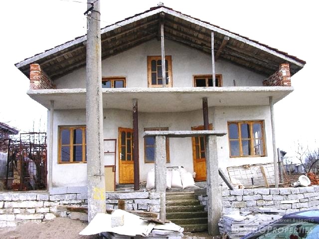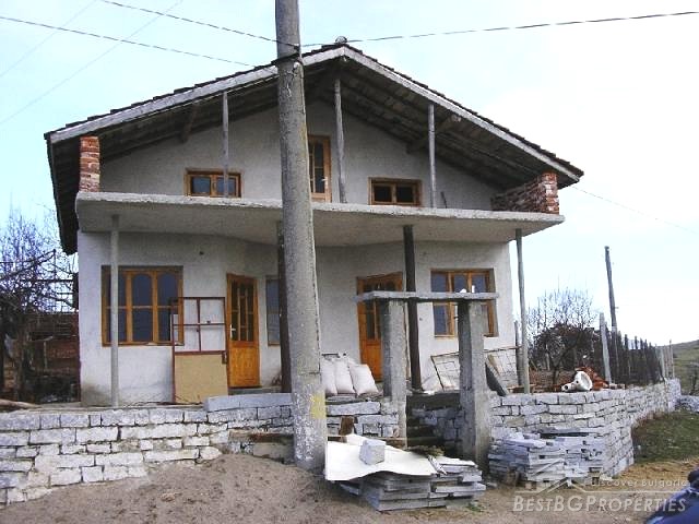 The house offers 130 sq.m living area distributed between five rooms – three on the first and two on the second floor. The two floors are connected with inner staircase. Inner bathroom and toilet are available. Our local workers could help you in completing the house. It is supplied with electricity, running water and telephone line and needs just rendering outside, painting and proper furniture. The yard that goes in the property is 1000 sq.m.