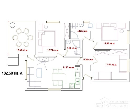 We offer you three luxurious single storey houses currently building in a lovely village only 10 km from the sea and the International Airport. The village benefits from its location being close to Burgas /15 km/ and Sunny Beach /20 km/.