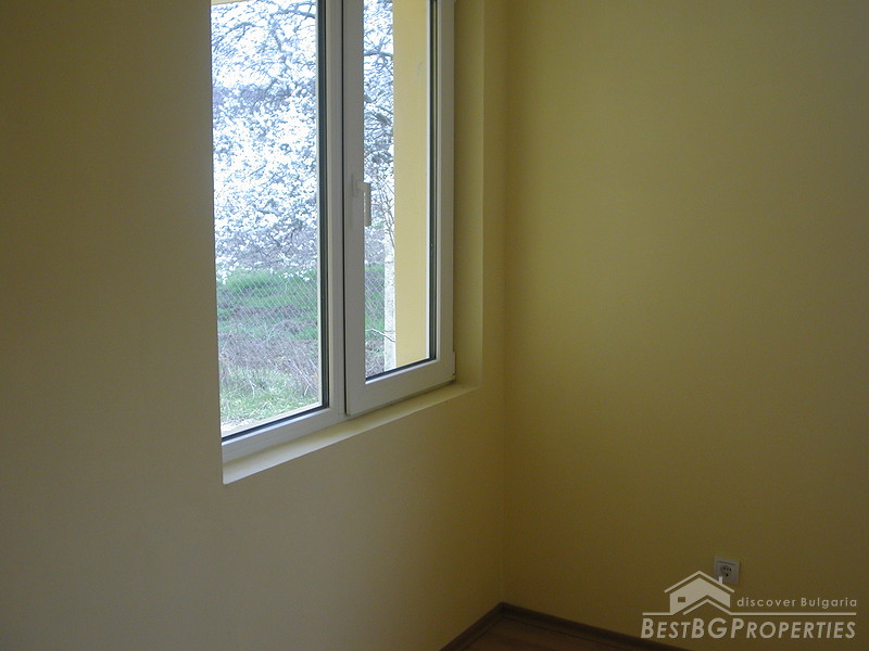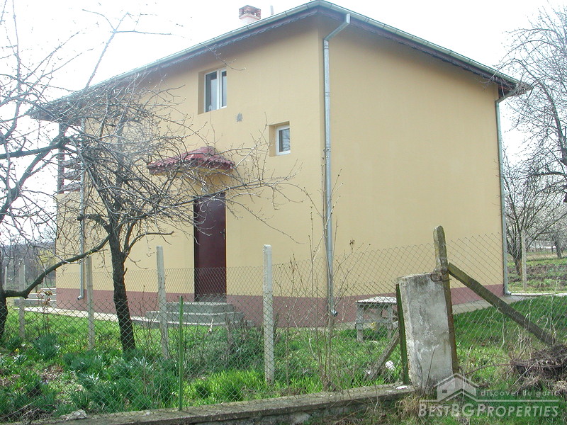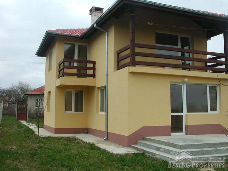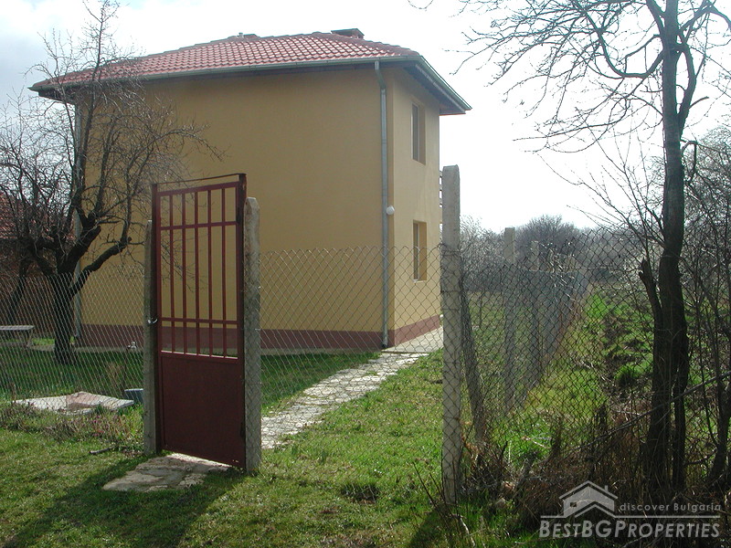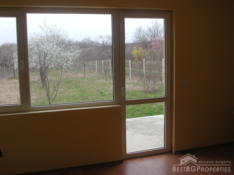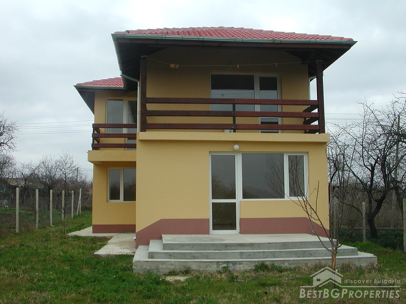 This house is a brand new built one.It has two floors.The first floor has a huge living room with French windows facing the garden,one bedroom with a bathroom and a toilet. Internal staircase takes you to the second floor and the extra two bedrooms with bathroom and a toilet there.The living room has a fireplace that heats the whole house. Laminate in the rooms and tiles in the bathrooms are already placed. The house has a huge garden of 850sq.m.