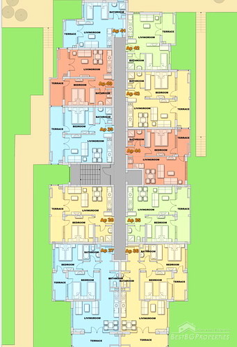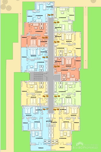 The apartments will be finished with large terraces and some of the flats will have sea views. You can be sure of the luxurious finishing works including high quality Italian tiles, fully equipped bathrooms, also built in kitchen units and furniture optinons.
