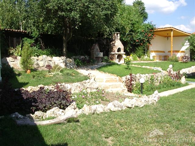 Finished to the highest standards including, insulation, terracotta and laminated flooring and PVC joinery this house is ready to move in. Proper furniture is all it needs. The garden is 520 sq m. it is perfectly arranged goes with barbecue area and two parking places. The whole property is surrounded with beautiful fence in Old Bulgarian style. There is an asphalt road that leads to it.