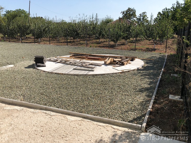 foundation for exposed swimming pool, landscaped with stones, stone pathway,strong metal fence with concrete foundations, solid front garden wall,re-enforced building supports with steel beams, new PVC windows & doors on the pool house, new level solid concrete screed floor in the pool house, and much more...