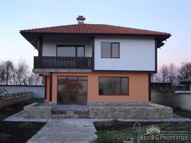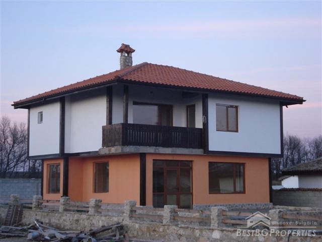 On the second floor, there are a corridor, a bathroom with a toilet, three bedrooms, one of which with a bathroom and a toilet, a common terrace for the two bedrroms and another small terrace. The total built-up area of the property is 153 sq.m., the garden is 705 sq.m. The fence is made of stone and wood, there is an outside tap and a parking place for a car. The house is insluted. The finishing work for the house includes - flooring, bathrooms, a fire-place and kitchen furniture.