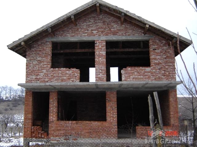 The villa is in rough construction but running water and electricity are available. The building is situated on 75 sq.m and the total living area is 220 sq.m. There are three storeys one of which is grounded. The rooms are six – two at each floor. An inner staircase connects all storeys. There are no bathroom and toilet yet but inner ones could be made.